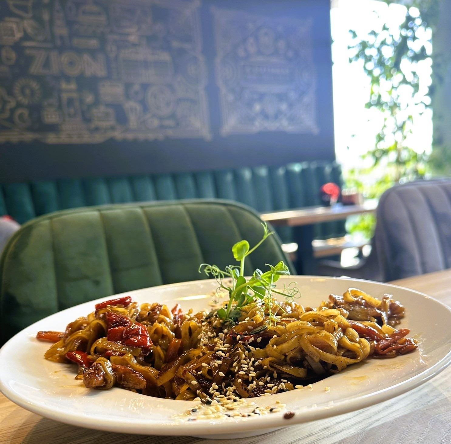 Un preparat delicios cu tăiței de orez, piept de pui fraged, legume crocante și sos dulce-picant de chili. O combinație perfectă de texturi și arome, ideală pentru iubitorii de mâncare asiatică!